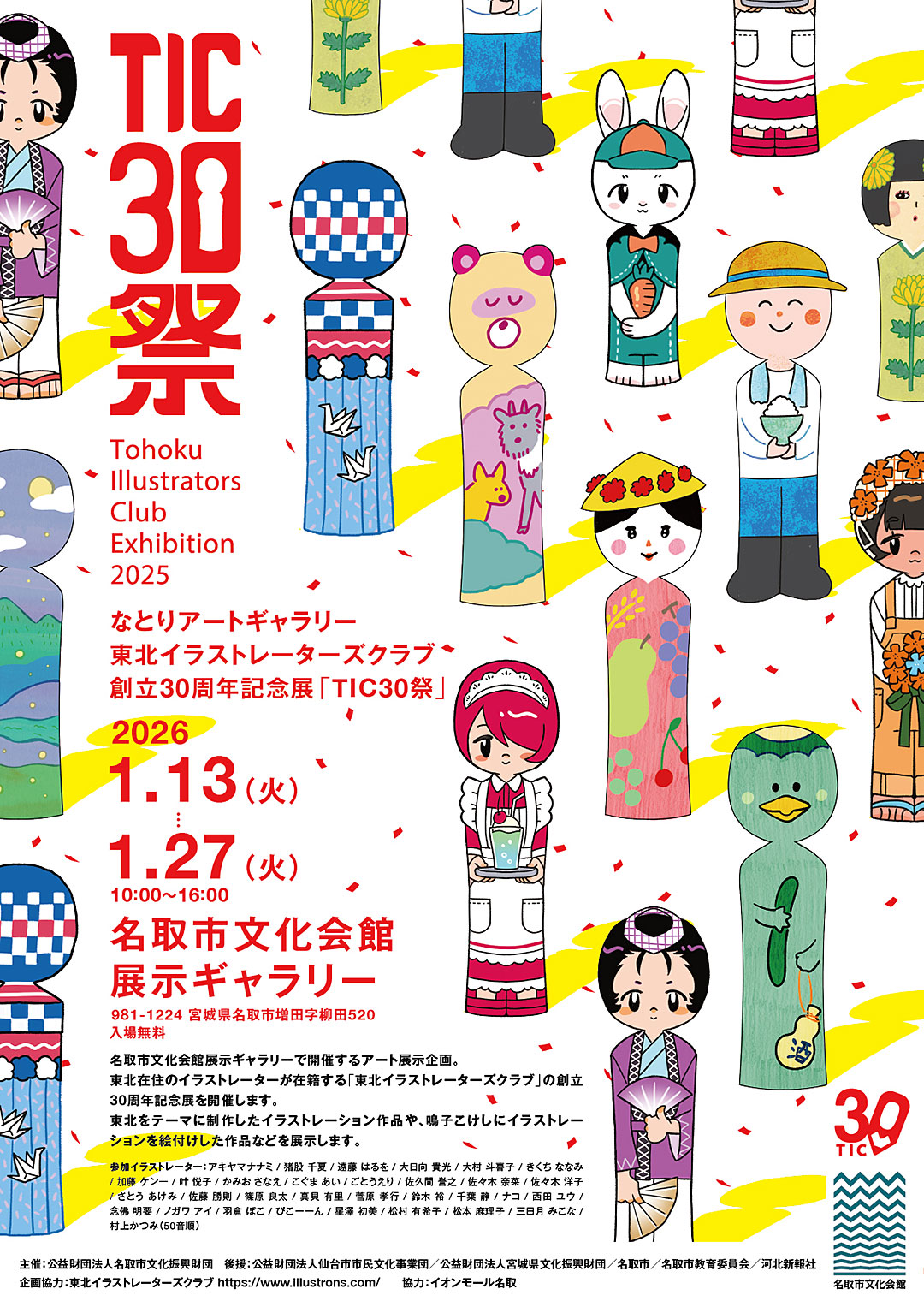 2025年11月に開催した東北イラストレーターズクラブ創立30周年記念展「 TIC30祭 」を、名取市文化会館 展示ギャラリーにて巡回展示いたします!